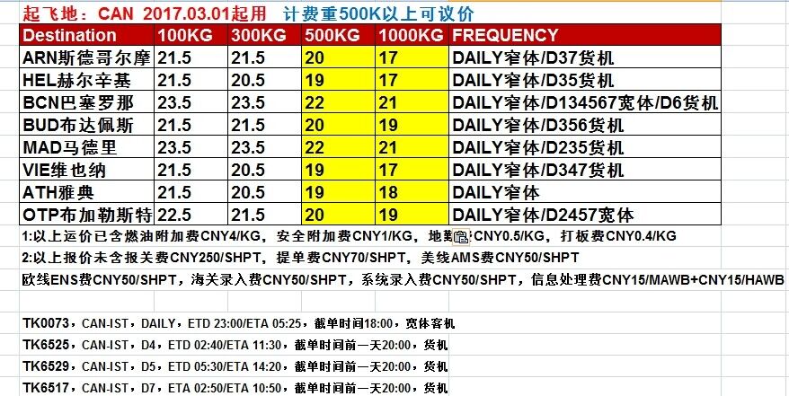 根據客人所咨詢(xún)深圳到TK歐洲空運出口貨物的重量、體積、目的地等信息,以及客人的服務(wù)需求,為客人提供最合適的深圳空運報價(jià)。